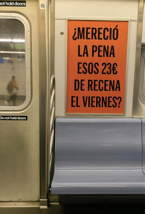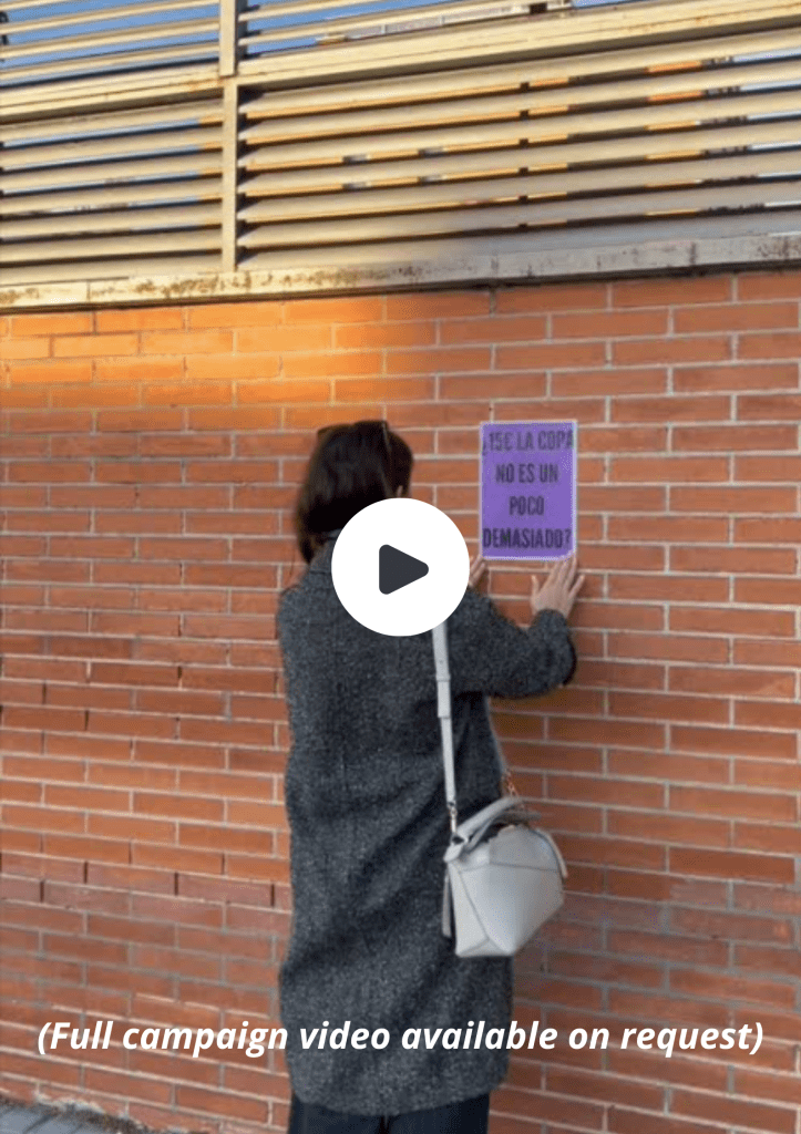 The first phase of the campaign focuses on physical activation in everyday urban environments. Posters with direct, provocative questions are placed in streets and public transport spaces, confronting people with small but recognisable expenses.