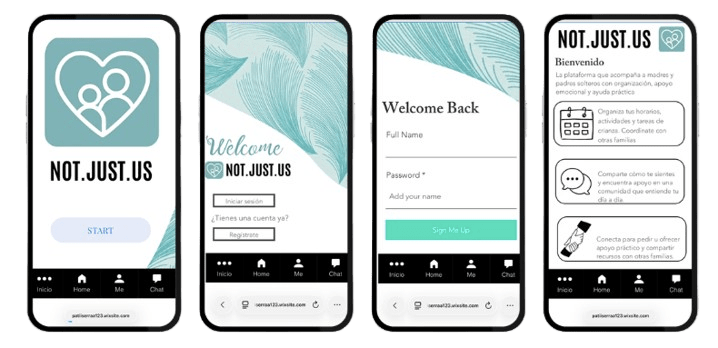 NOT JUST US is a digital platform designed to support single-parent families by creating a space for connection, organisation and mutual help. The project responds to a real social need, focusing on emotional support, practicality and community.